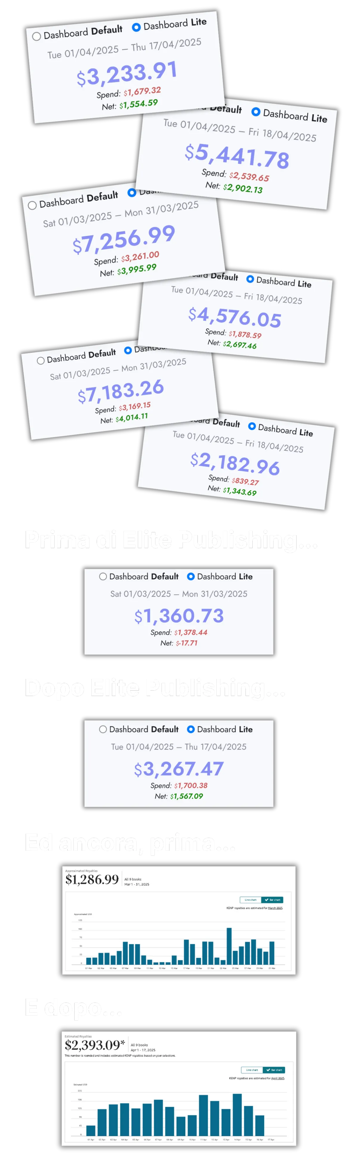 Ho provato da solo per mesi senza ottenere nulla, ma con Elite Publishing ho avuto subito una direzione chiara. In meno di due mesi ho pubblicato tre libri e ora vedo vendite tutti i giorni. È stata la scelta migliore che potessi fare.